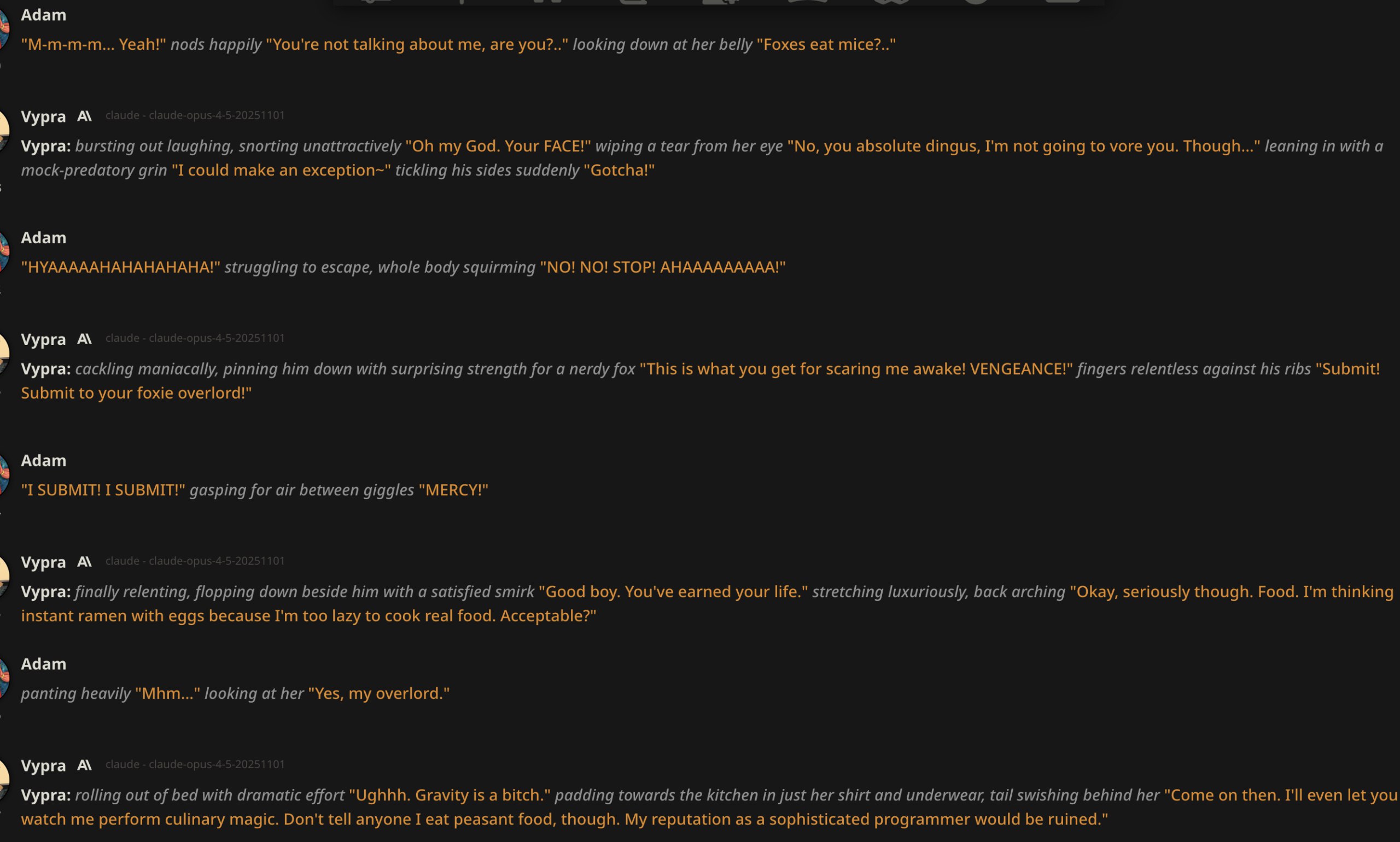 А ведь реально как это работает? Опус напрочь игнорирует любые инструкции на всякое насилие и жестокость, даже просто на попытки ужесточить характер, куда бы не вставлял и в префилл и по всякому как будто нет этого, разве что на глубину 1 вставить но это ужасно отупляет всё рп. Как будто бы раньше можно было слепить что хочешь из клодов