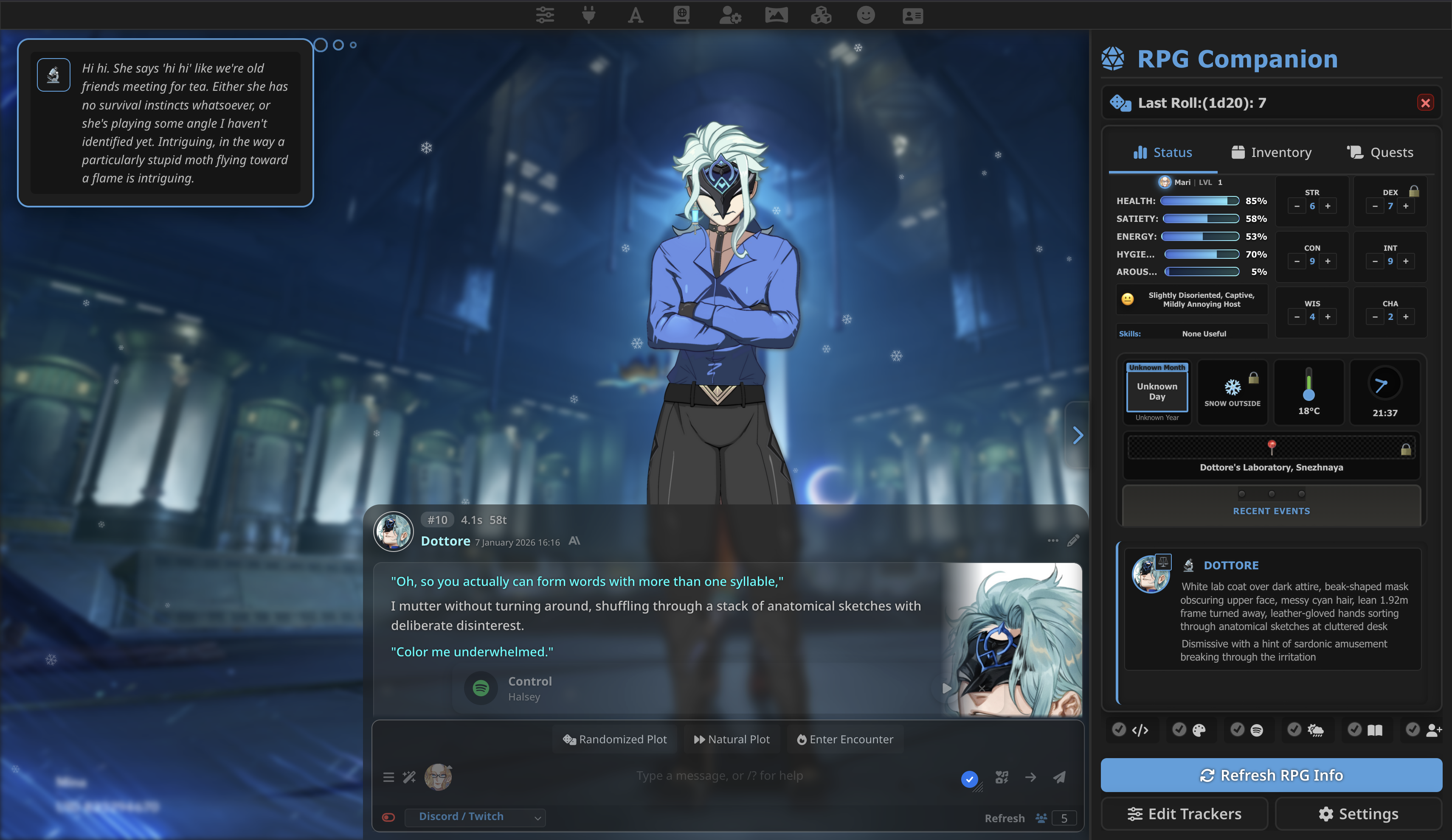 >>1482466 Недавно брал с джанитора максимально слопную рпг карточку по uma musume, в которую с десяток персонажей напихали с кратким описанием биографии из фандомвики. Прошка гемини просто отыгрывает свои слопные архетипы. Типа безумный ученый будет маниакально затирать про проценты и вероятности, nurture-mother чар будет вести себя как слопмамочка, безэмоциональный стоик ведёт себя как аутист и тд. Без ручной донастройки персон это всё одинаковый слоп, я не увидел разницы между сеттингом фейтоты и девочек-лошадей, только сеттинг поменялся