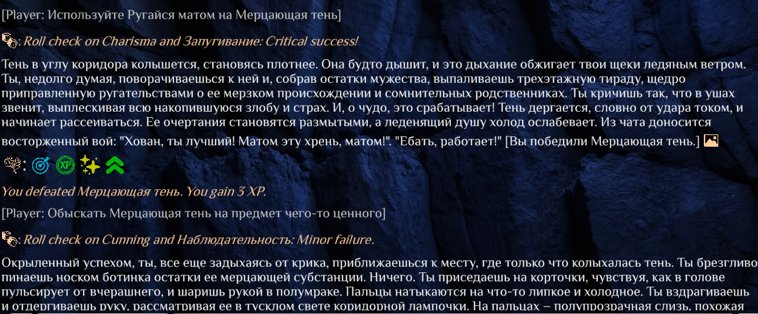 >>1481993 я пробовал директор и это какая-то шизовая хуйня которая почти всегда скатывает всё в петросянство. на нём буквально невозможно играть дольше 10 смс
