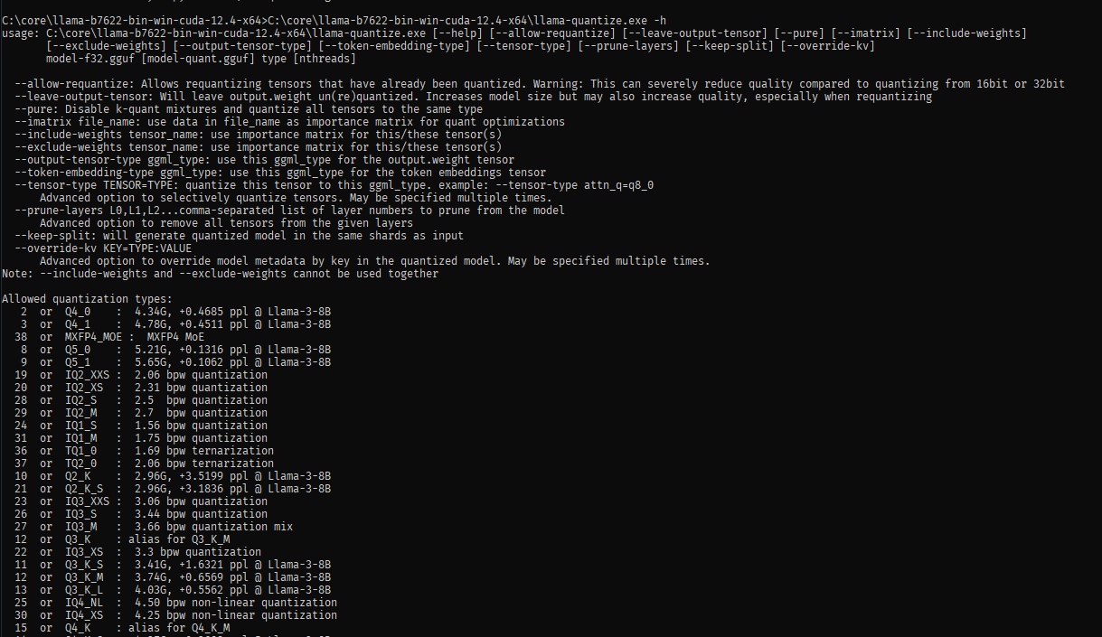 >>1480338 >Еще через пару часов скачается IQ4_XS Если хочешь поэкспериментировать - скачай оригинал или gguf в fp16 один раз, и пробуй разное. Там команда конвертации уровня llama-quantize.exe <кванты> <входной файл> <выходной файл>, конвертируется по слоям и быстро, даже на старом поколении. Ставлю рарку, что быстрее часа будет.