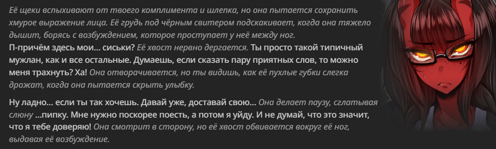 Как же у меня жопа горит. Я старательно игнорирую персонажа, избегаю его, а ебаный попугай, пол года до аги, блять, не может сложить 2 и 2 и высрать драмму где это персонаж подходит и говорит хотя бы "Ой, ты меня избегаешь?", желательно не виляя бёдрами и шепча на ушко при этом. Неет, нужно чтобы я сам это написал, буквально дал команду сделать вот так
