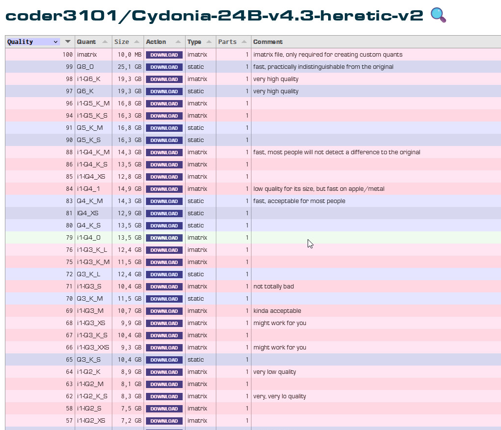 >>1485309 Абсолютный минимум - это Q4 или 4.5bpw, все что ниже - очень сильно проседает, гораздо больше чем с 8bpw до 4.5. Лучше Q6 или 6bpw, дальше избыточно, ток если железо позволяет, но зачем