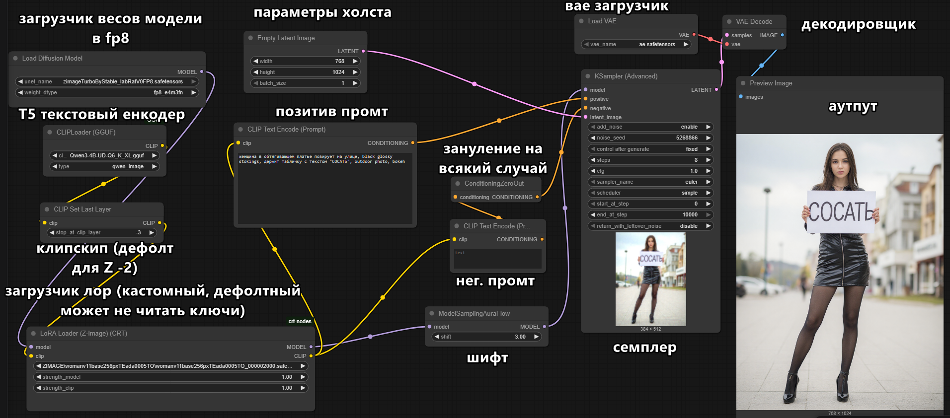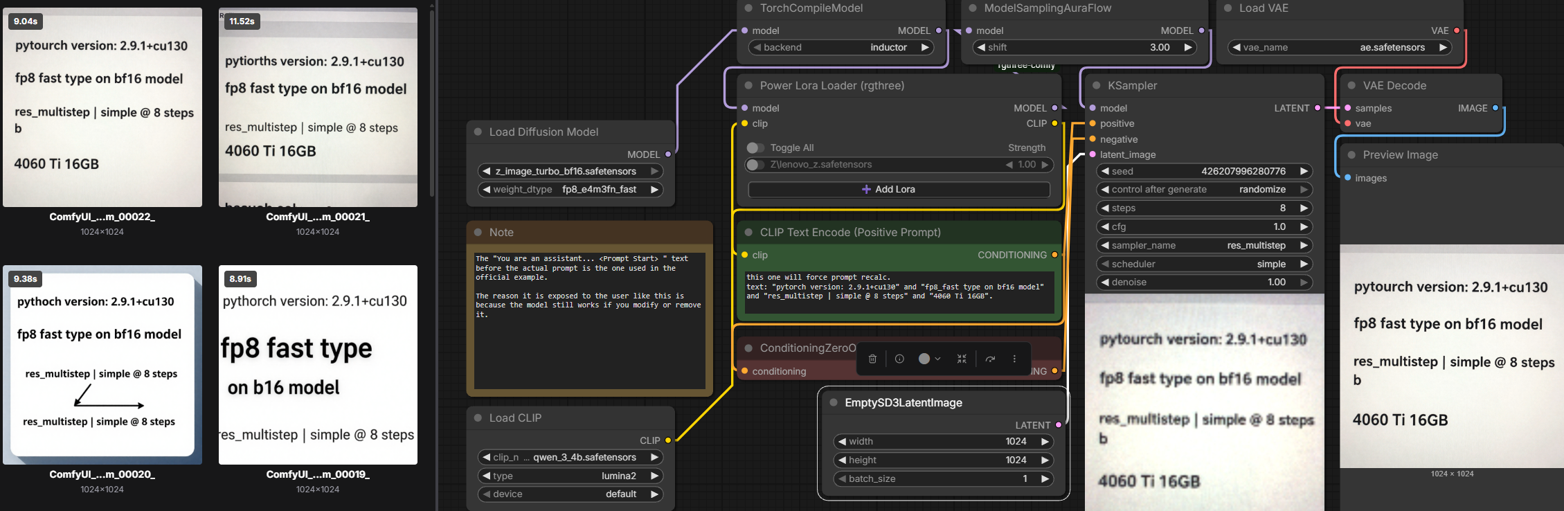 https://civitai.com/models/2172944/z-image-tensorcorefp8 Эта хуйня либо сделана косоруким уебком (в принципе, как обычно на баззофармильном лайкоублюдском мерджепарашном свинозагоне), либо комфи до пизды на все эти фп8, всё жрет как 16-бит.