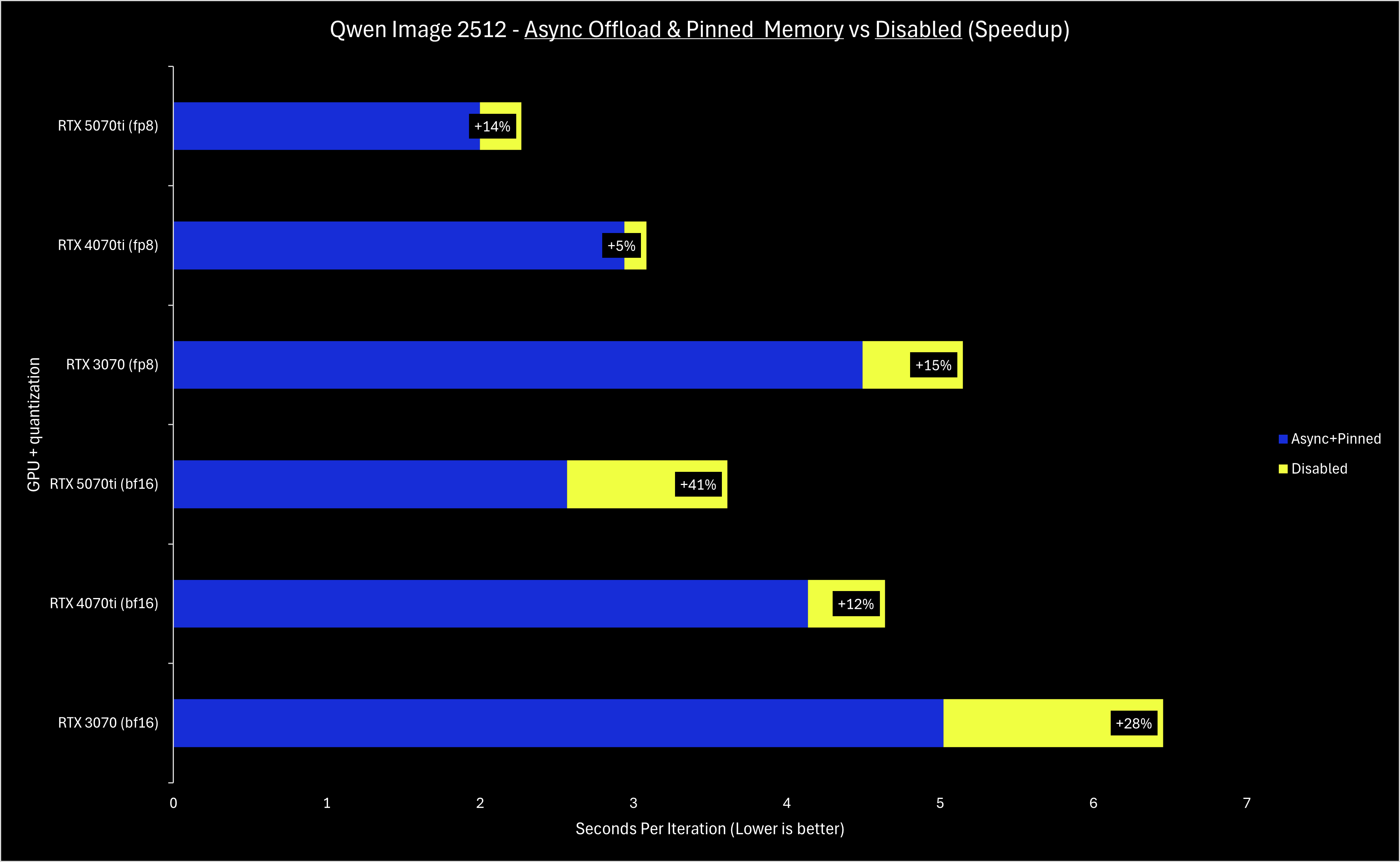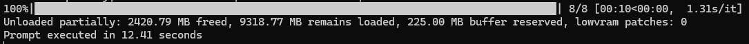 >>1491450 >>1491452 >>1491477 Вот кстати да. Я протупил, хотел скачать на свой антиквариат (3060 12GB) 9B в fp8 - перепутал и скачал 16-ти битную, которая 18Gb весит. На тестовом workflow (1024х1024) из самой comfy - 2.5 s/it, 25-30 сек на картинку (дистил модель). При 1600x1200 - 5 t/s и 47 секунд. Так что, даже на такое старье, fp8, по сути, и не нужна, если обычной памяти хватает. (~25-30 заняло).