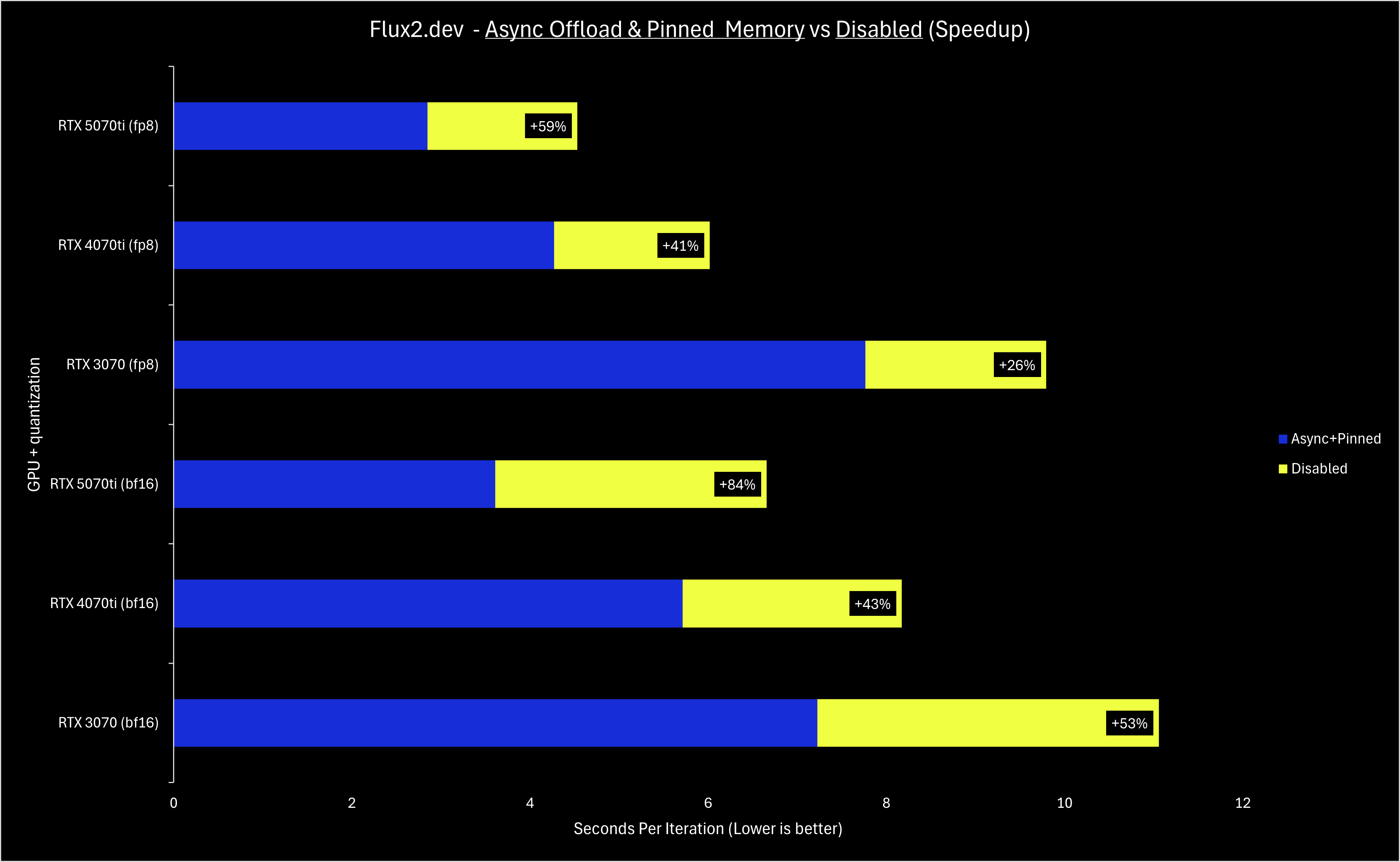 >>1486318 Это фигня какая-то. У меня, как говорил раньше - 4.5 сек на шаг если датасет 256. Вся лора за 2-3 часа готова. Или ~9-12 в случае датасета с 512 - тогда до 6-ти часов тренировка занимает. 3060 12GB. Но у меня еще 64GB RAM и Linux. Смотри чем машина занята - возможно у тебя оно в свап ушло из-за недостатка RAM (хотя и не должно вроде), или вместо OOM из VRAM-а в RAM свапится через драйвер видеокарты (если винда) - это тоже очень медленно. И вполне может быть - у тебя offload для transformer стоит на 0. У меня это вызывает OOM, и потому выставлено на 60% - тогда все в норме.