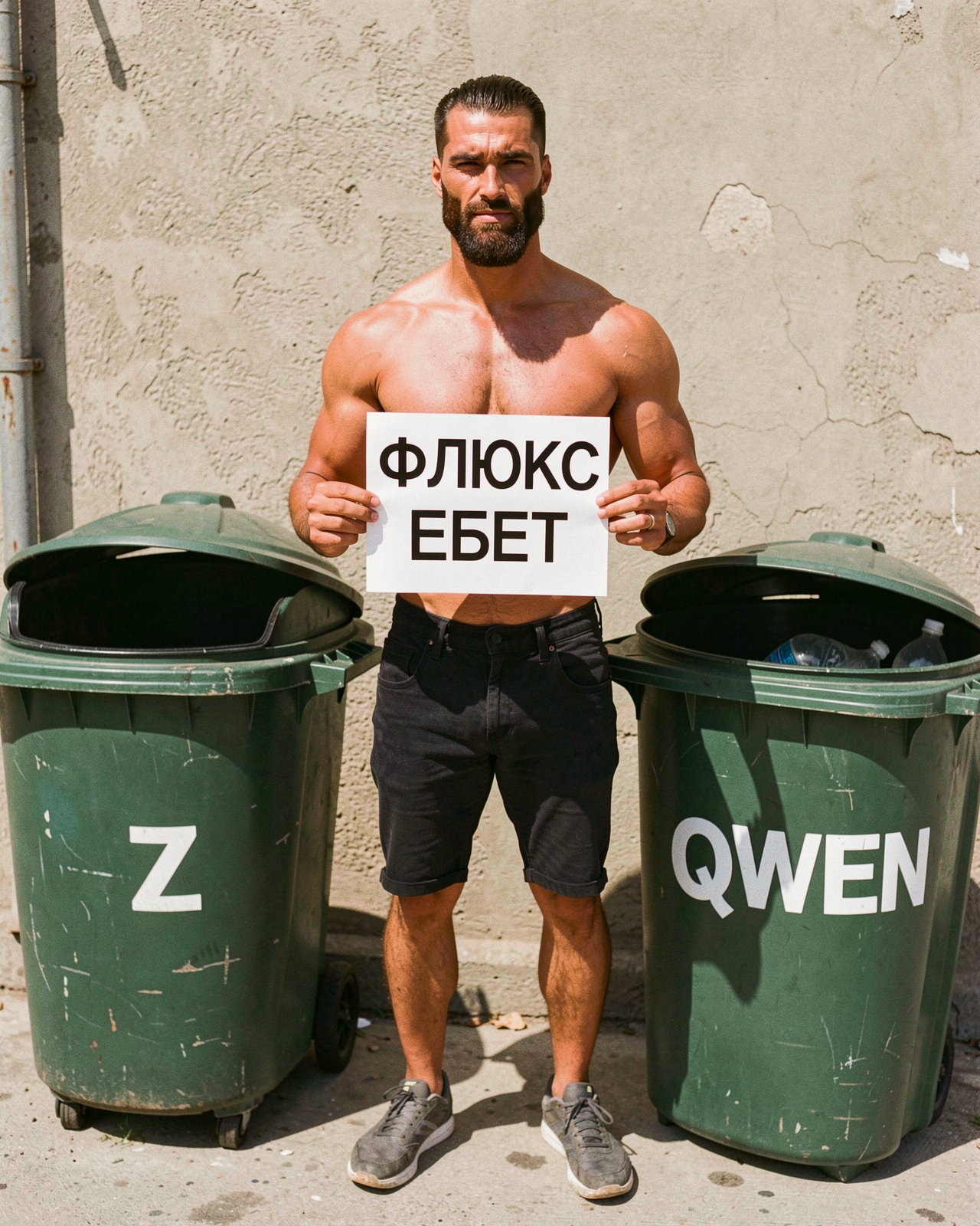 Я до сих пор в ахуе, но Лабы таки выкатили что-то, боле-менее удобоваримое в этом плане. Только то и напоминает о том, чья она, что если настойчиво не указывать "naked" 2-3 раза - пытается хотя бы тонкие стринги надеть. :) Зато в нормальные соски может сама (у ZIT они - хм...) С маленьким нюансом - в промпте надо прямо писать "соски и ареолы", иначе ленится. Показательный случай, пробовал edit на позы. Исходник - фото голой женщины которая грудь прикрыла рукой. Заказал: перемести руку с груди ко рту (типа поза испуга, прикрыв рот чтобы получилась). Первая же попытка - все сделано, но открывшаяся грудь - анатомия манекена. Дописал в промт "... и теперь видно соски с ареолами" - поняла, и сделала как надо. В режиме edit при переносе фигуры с одной картинки на другую сиськи-письки тоже переносит. Edit вообще хорош в понимании чего от нее хотят. Утверждать не буду, но по личному впечатлению - квен сосет. Делает любой заказ - и позу, и стиль, раздеть, одеть, поменять персонажа с картинки 1 на персонажа с картинки 2 - целиком или только детали. Или даже взять с картинки 2 анимешного персонажа, сделать из него фото, и добавить на картинку 1. Правда, есть тонкость - к артиклям английского чувствительна. Иногда крайне важно - написано в запросе без артикля, с "a" или "the". Такие вот впечатления пока...