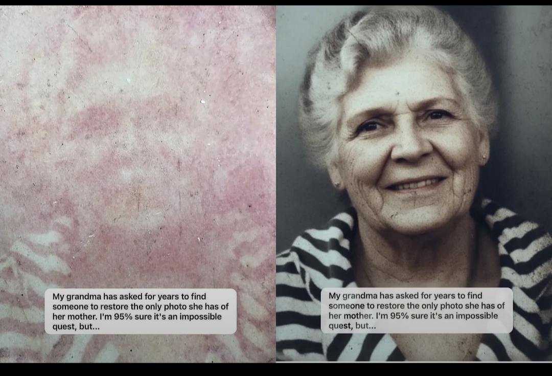 >>1492212 Я не знаю как это назвать. Мне не нужна такая реставрация как в постах ниже, но и не нужна ретушь, которая превращает лица в резиновых кукол. Мне нужно чтобы нейронка расшакалила фотку, дорисовала детали максимально правдоподобно.