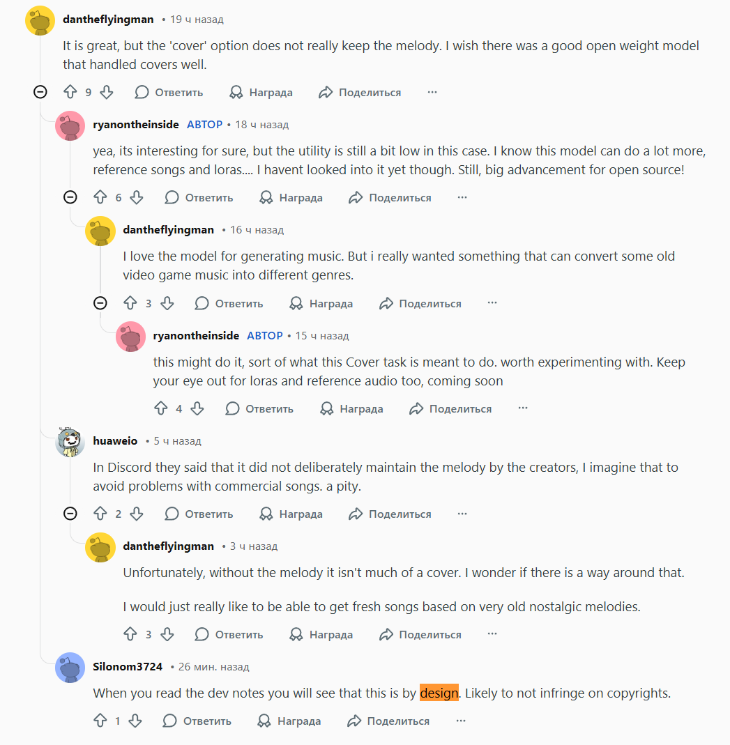 Бля, у вас тут такой творческий тред, а где же разводить техническую дрочь по поводу ACE Step 1.5? Это же не коробка с одной кнопкой, результат меняется от семплеров, от температуры и всей той кучи доступных параметров, открыты возможности для апскейла, манипуляций с cfg, не говоря уже о прошлых технологиях, которые могут работать тут (FreSca, допустим), но нет понимания как это будет влиять на результат. И главное, каким способом получалось генерить лучшую версию. А так же что там по обучению лор и насколько хороши они получаются.