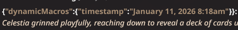 Кто знает, в таверне можно как то через команды включить сразу несколько регекс скриптов без перезагрузки чата? У меня на кнопку несколько /regex-toggle висят и сейчас при подгрузке регексов таверна перезагружала чат и все сообщения ёбнула, хотя до этого вроде нормально работало.