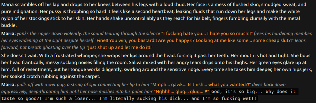 >>1486087 Ну, я SFW в 2.5 всегда отыгрываю. А когда кум начинается, то переключаюсь на трешку. На трешке SFW становится каким-то говном, вечно спешит куда-то все и скатывается в тот же кум слишком быстро