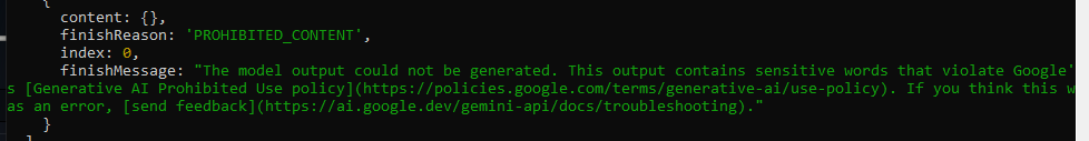 >>1487893 Нет, тоже абсурд, да и на повтор копирайта отдельная ошибка есть (RECITATION). Причём на каннирейп гейниггерами из глубокого космоса не триггерится, а на эту хуйню да. Больше похоже что шатают модель или шоггот вырвался на свободу.