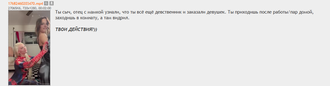 >>1488777 На безжопе такой-же слопчик, только с уебанским форматом Это нужно только всяким чмоням и куколдам, которые хотят чтобы их в рп гнобили и унижали, чтобы убрать юзербиас