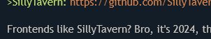>>1495177 >>1495182 Правильно, потому что когда еще постили логи за них буллили людей до нейроимпотенции, подмечая все паттерны и разбирая почему это слоп. В итоге окуклись в манямирке из кругодроча, где правильно оформленная карточка точно даст неслопный аутпут, мамой клянось, но логов вам не покажу.