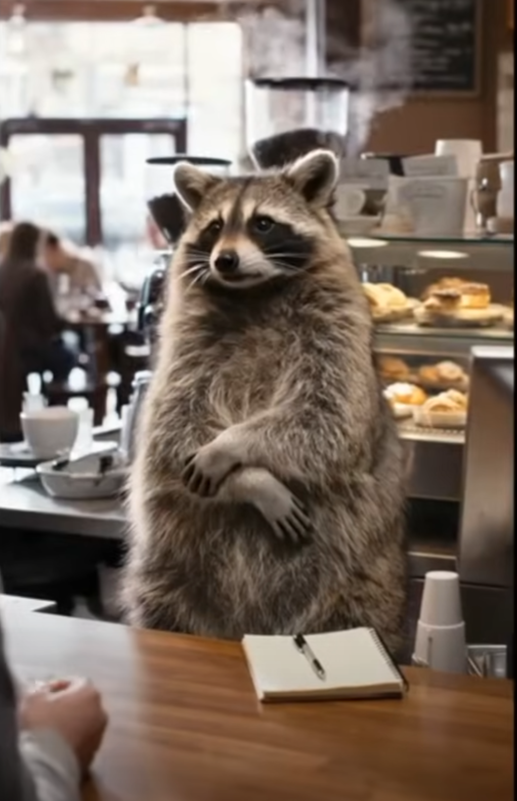 Возьмём, к примеру, енота. Им подали изображение енота и запрос в стиле документального фильма: «Енот управляет кофейней». Результат: Видео сохраняет точное лицо и черты этого енота на протяжении всего ролика, пока он управляет своей маленькой кофейней. Согласованность идентичности безупречна.