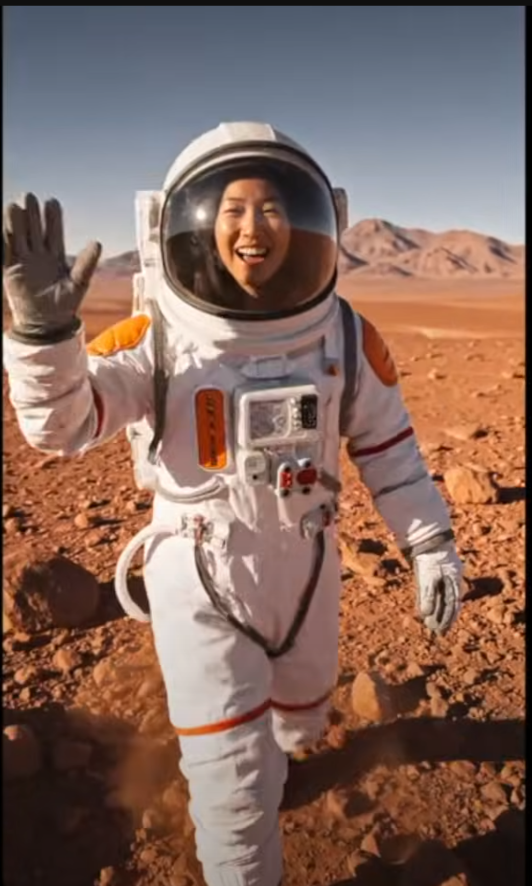 Или попробуйте: «Я иду по Марсу в скафандре» — и модель поместит вас на марсианскую поверхность, сохраняя ваши черты лица. Совпадение лиц действительно хорошее.