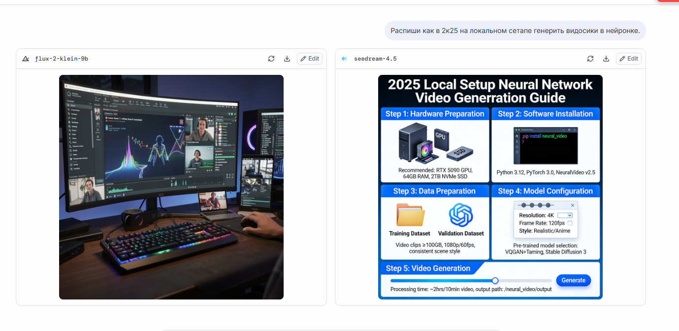 Под капотом Klein использует архитектуру на основе потоков (flow-based) с текстовым эмбеддингом QN3. Версия с 9 млрд параметров содержит текстовый энкодер на 8 млрд параметров и была поэтапно дистиллирована до всего лишь четырёх шагов вывода. Именно так достигаются эти сумасшедшие скорости без ущерба для качества. Процесс дистилляции позволяет модели сохранять качество на уровне передовых решений, значительно сокращая время генерации.