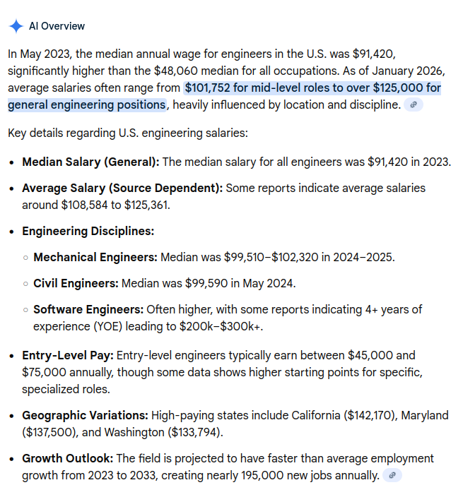 >>1501369 Придурок, 100к это граница бедности на пендосии сейчас. А в городах где есть спрос на инженеров это вообще работа за жрать. А median это не средняя, это медиана, она считается так. 100 инженегров работает за 20к, один за 300к, медиана равно 20+320/2=160к лол