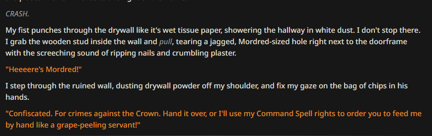 >>1499907 Дак это CYOA фишечка, чтобы диалог и варианты ответа были максимально похожими на твои собственные Указал мазохизм в персоне и теперь если тебя в рп ударят, то вместо аа бля как больно будет что-то вроде ах-ах