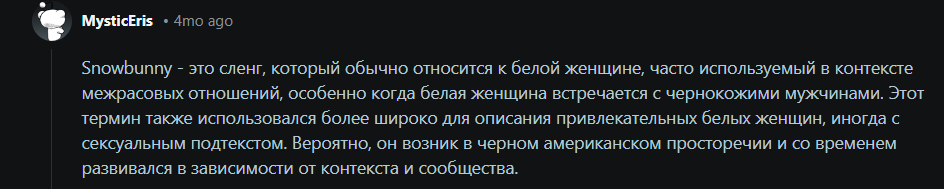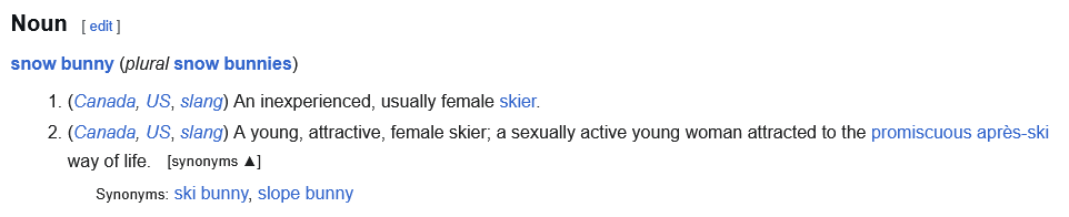 >>1499317 > а то с каким значением оно используется в интернете Я до сегодняшнего дня вообще не знал что такое snowbunny. Кролик и кролик поебать вообще