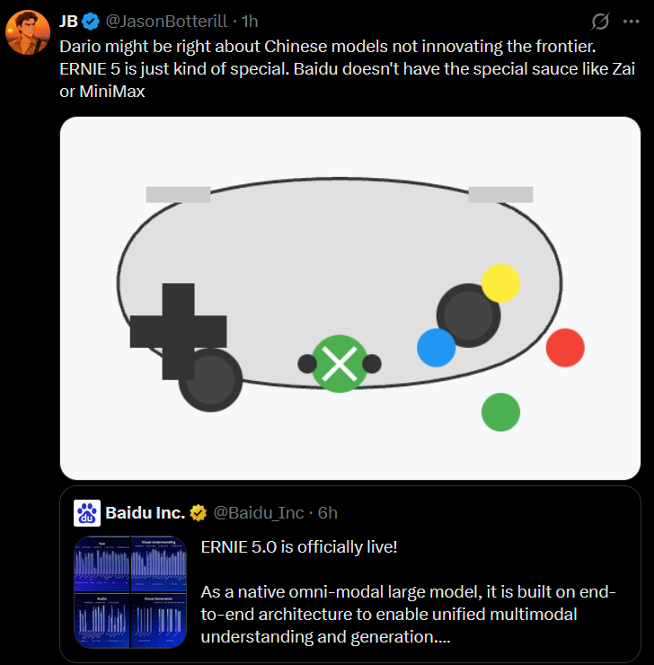 >>1500032 >Эрни 5 сильно лучше/точнее/быстрее 3го гемини? На скрине бенчи эрни (градиентом) с гемини 2.5 и др сравниваются, буквально один уровень вообще у всех, видимо бенчи совсем бесполезны стали для оценки ллм