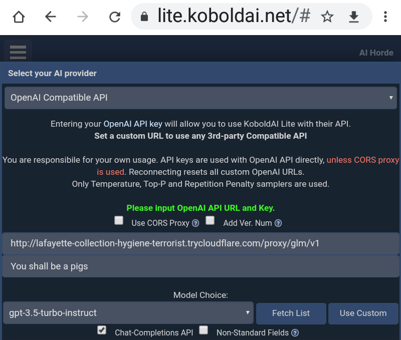 Поясните как подключить Joeimini. Вставил адрес API с требуемыми для chat completion окончаниями после v1, но UI не видит эндпойнт и не фетчит лист моделей. То же самое и без постфиксов (когда только v1, или так же, как на странице прокси). В форме ключа - You shall be as pigs