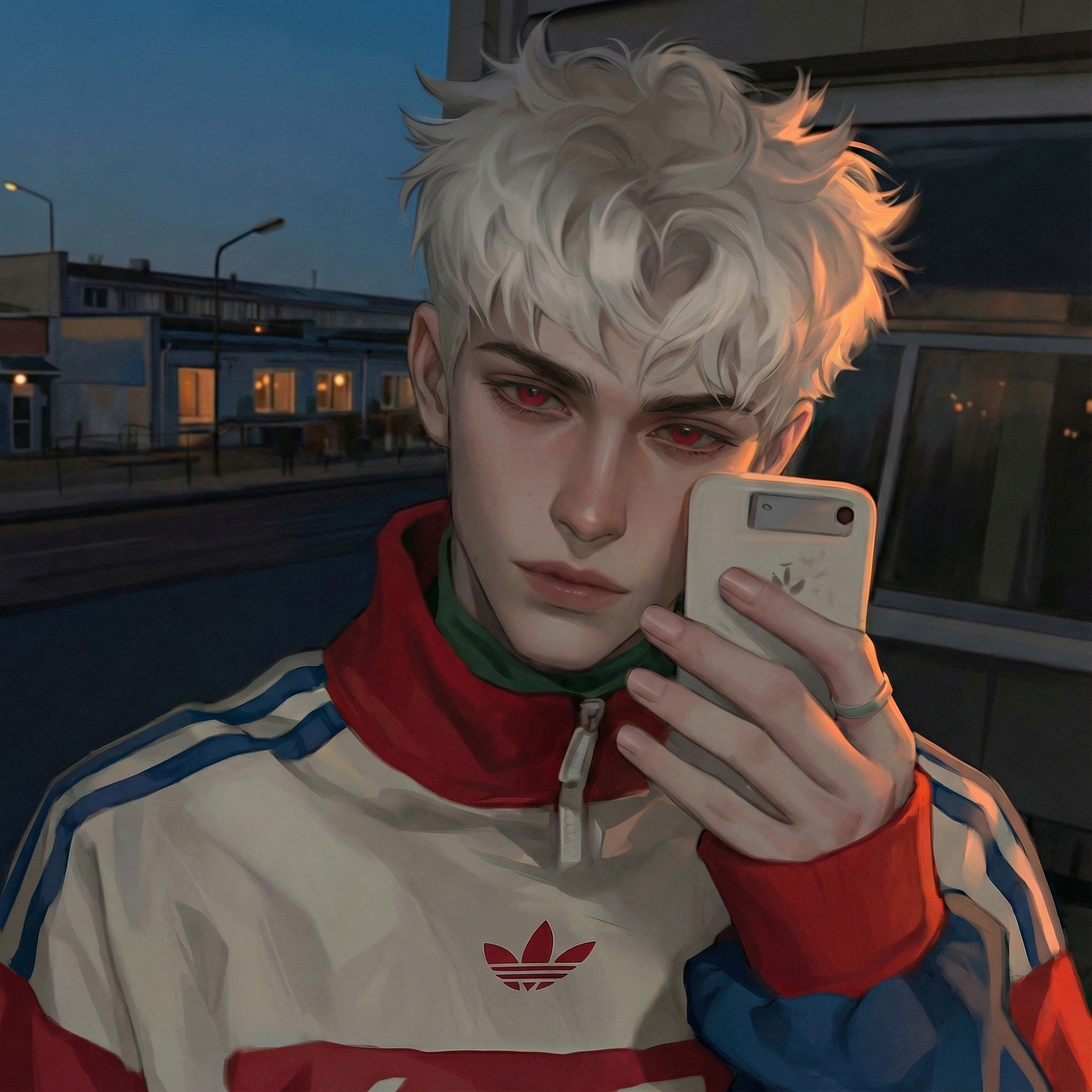 Ты идёшь к ней, она тоже тебя замечает. На губах робкая улыбка, но она не подходит ближе, а наоборот — слегка опускает голову. Ты подходишь и тихо зовёшь: «Луолуо?» Она поднимает взгляд, ваши глаза встречаются, она тихо произносит «Угу» и тут же отводит взгляд. Ты замечаешь, что она крепко сжимает телефон, щёки покрываются румянцем.