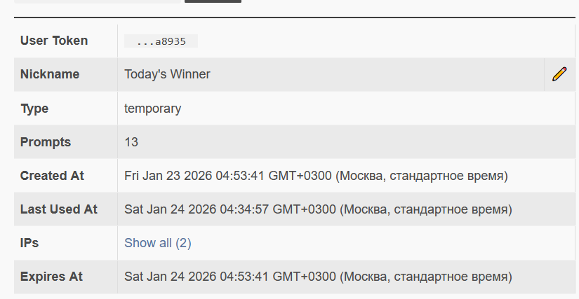 >>1501863 Да вроде не много, в последние дни вообще почти не свайпал... А че, как это фиксить? Чекал токен через сайт прокси его, там никакой инфы, он рабочий. Первый раз вообще с такой ошибкой сталкиваюсь