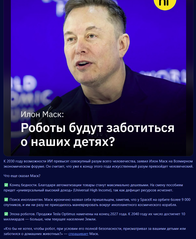 >>1501800 На самом деле то что сетка хуже тебя напишет суммарайз это мем, скорее всего ты попробовал пару раз и бросил. Подобрать сложный промпт вполне можно. А ручное написание убивает погружение, по-моему.