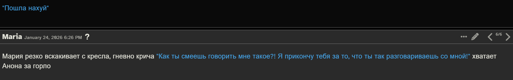 >>1500699 А какие сетки умеют в это? Вот опус 4.5 у меня может если в сообщении ничего нет, сделать его коротким, например ты лег спать в кровати с чаром.