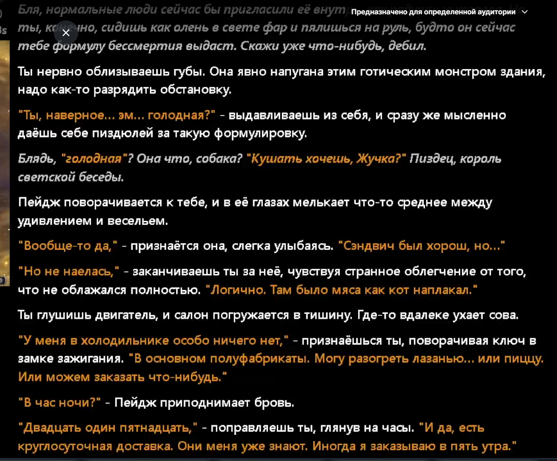 Слоубёрнил секс сцену целый час, было ноль проблем. Потом один свайп завис на пару минут, а как отвис - пошли прохибитеды. Подрубил пробелы и майндфаки - не работает. Откатился в рп к началу секс сцены - всё те же прохибитеды, хотя буквально повторяю те же действия, только с подрубленными пробелами. Это че я стал свидетелем подруба внешнего фильтра каким-то паджитом в гугле?