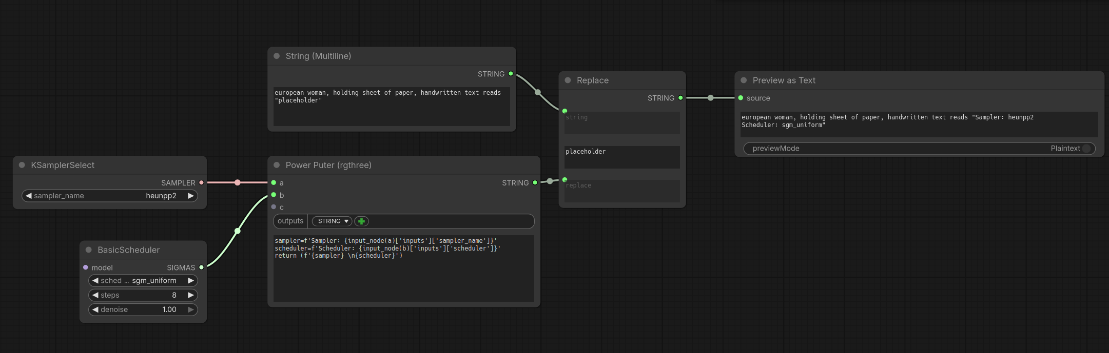 Очевидно, что если не выкладываешь workflow со всеми использованными prompts и настройками (для подтверждения и воспроизводимости результатов любым желающим), без prompt непонятно вообще какой должен быть конечный результат. Предположим, следования prompt на некоторых samplers/schedulers нету, колбы и предметы будут расставлены в другом порядке, с содержимым других цветов, геометрия, формы, освещение будут другими и так далее. Эти моменты только из prompt понять можно: что именно указано в prompt (что сверять), а что рисуется рандомно и не имеет значения.