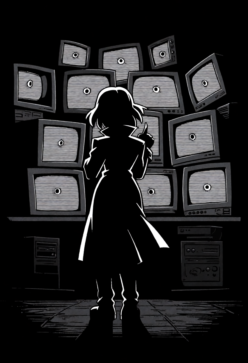 Можешь добавить блики и помехи в мониторы, с мерцанием света и лёгким шумом? Минимум динамики!