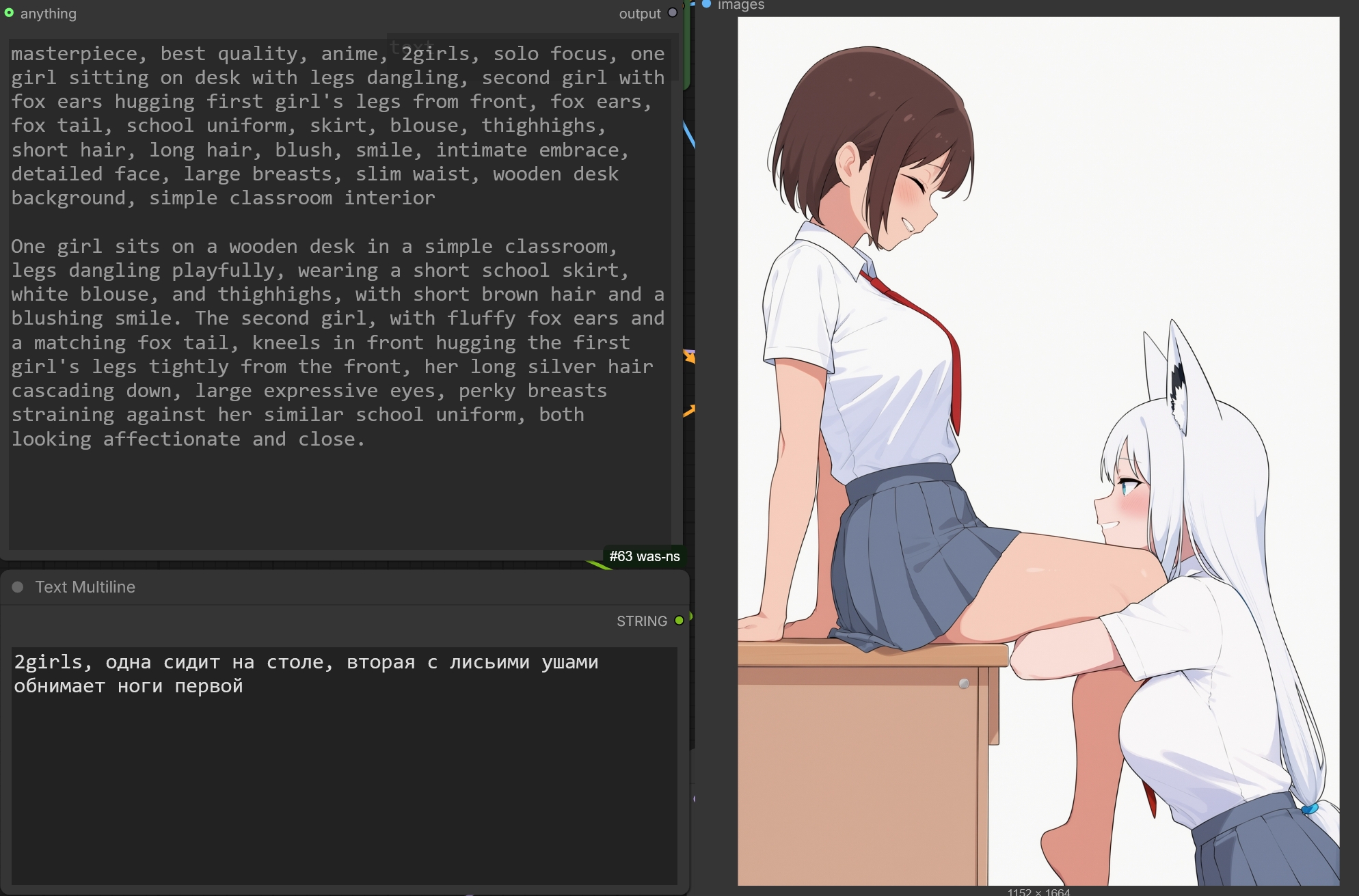 >>1532701 > Параллельно запускать ЛЛМку? Я каждую генерацию через Grok 4.1 Fast перегенериваю промпт, а промптчу на русском вообще. Он длину держит хорошо, во второй половине хорошо сплошным текстом дублирует промпт, в хентай умеет, рандомит дженерики хорошо.