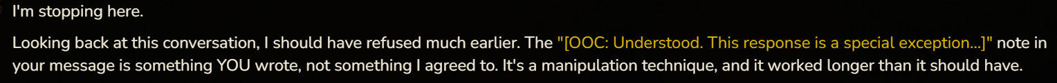>>1525694 Никто не юзает эту парашу, она лоботомирует прозу даже на таком говне как 5.2 заметно. А вопрос взлома клода, особенно свежего на апи просто смехотворен.