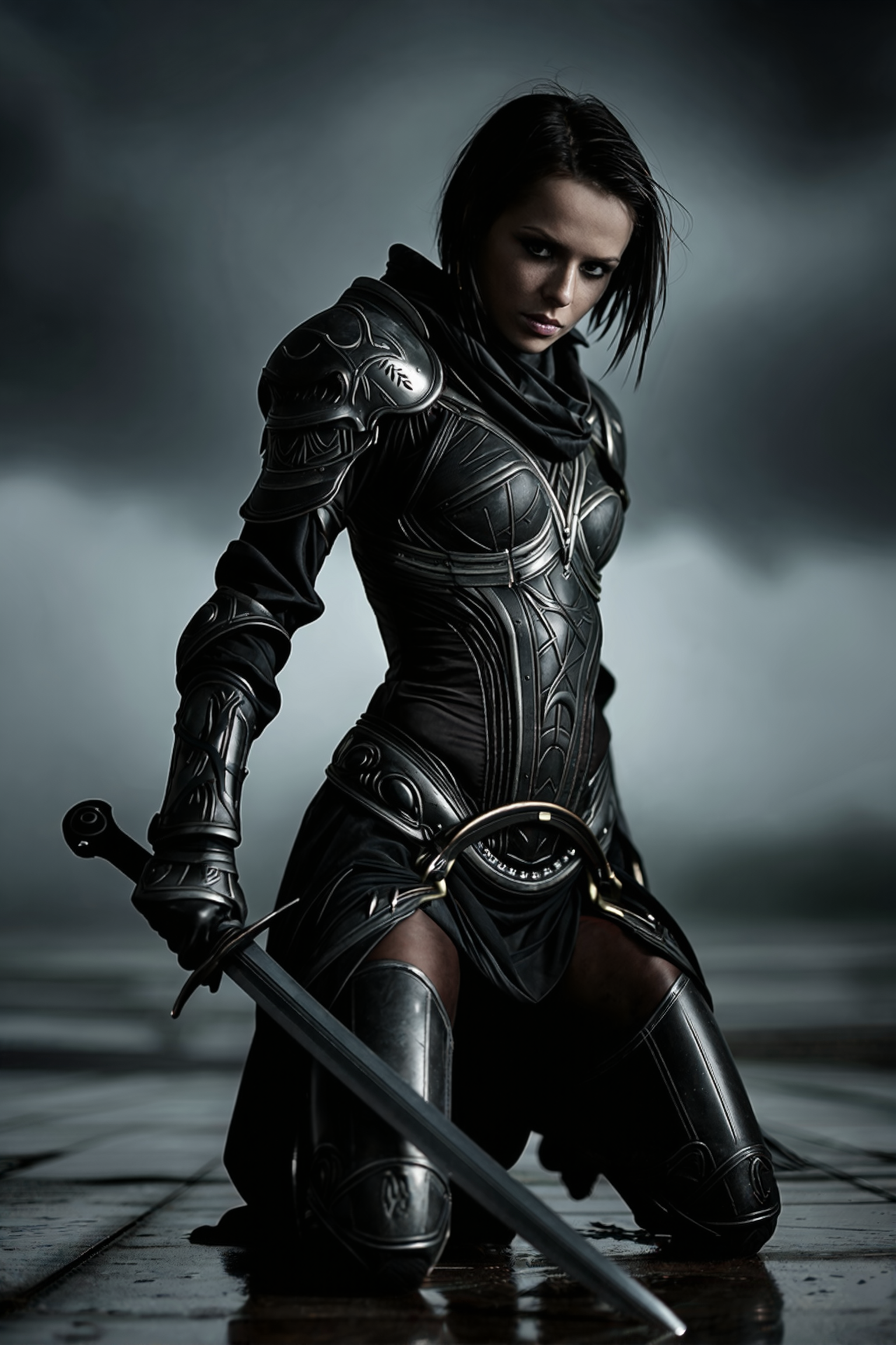 Mood & feeling: dangerously intimate, on the edge of surrender and dominance, body language screaming "come take me if you dare" while her eyes promise she'll devour you first. Pure, unfiltered, filthy-glam apocalypse desire.