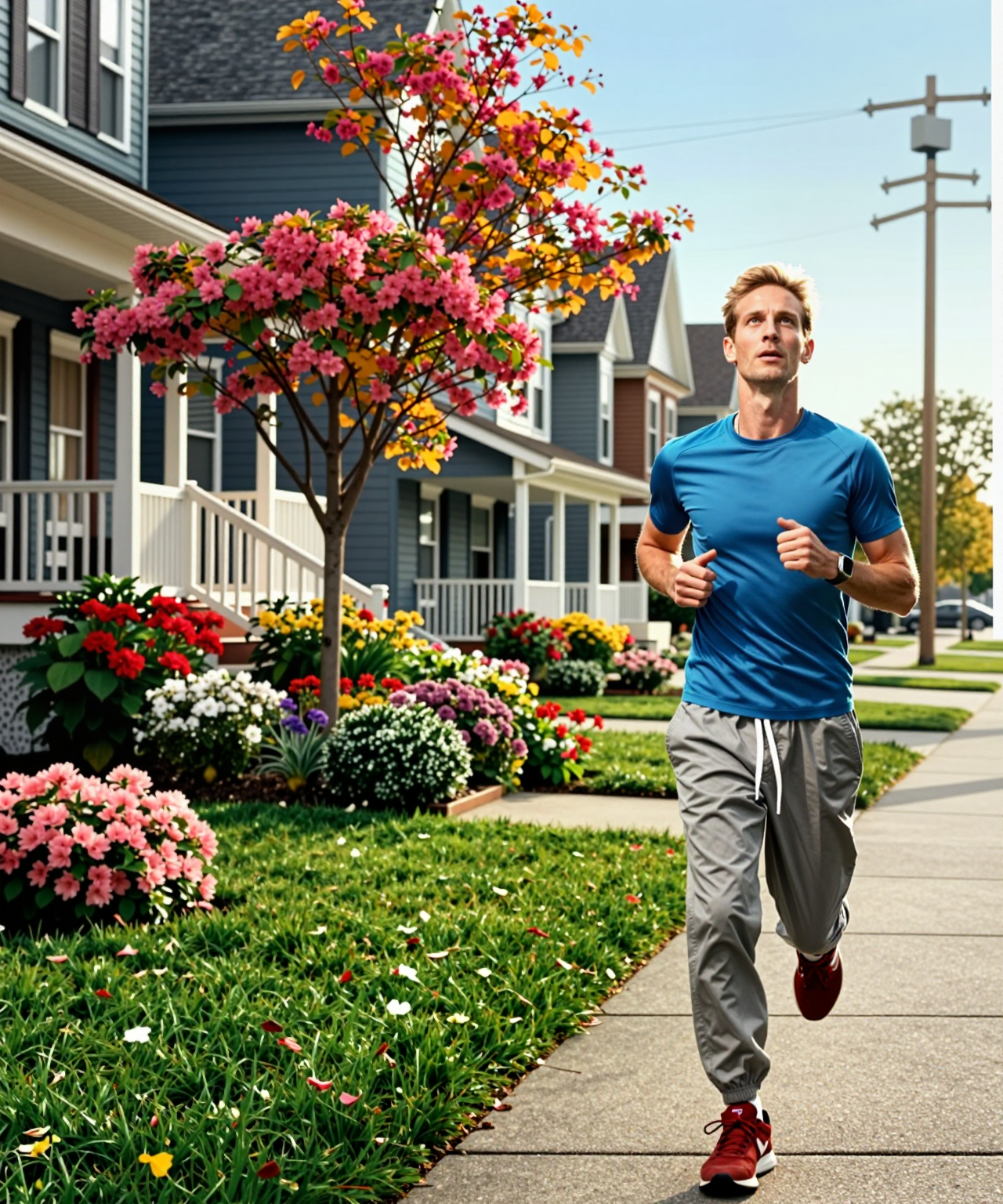 Пишу: равномерное освещение, без бликов и пересветов, сохрани исходник - оно упорно мне рисует блики и пересветы. Как это говно победить? Transform the image into early spring: the first fresh green grass and the first spring flowers, sparsely growing here and there, young and tender light green leaves and buds on the tree branches, a beautiful blue sky with light clouds. The sun illuminates the scene evenly, without bright glare or overexposure of the building and objects, the scene is contrasting. Relaxed style of digital photography outdoors. Preserve the original composition, objects, cropping, brightness and contrast of the image without changing them.