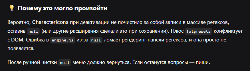 Большинство именно мутирует рпг, чат без lore и триггеров - это notepad с api, обновления ств выходят регульярно и не ломают сэйвы, твой совет - для тех, кто chatgpt в телеге юзает и думает что это пик.