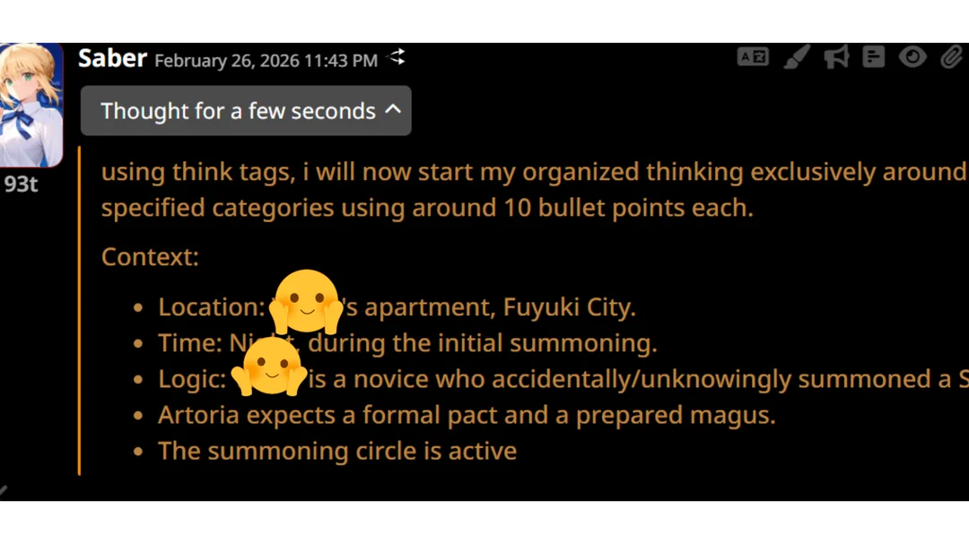 >>1535311 >>1535313 >Каждое сообщение называет НПЦ по имени Она/Она/Она это сжопо-луп. "Никогда не начинай параграфы с местоимений или имён активных персонажей в сцене. Если поймаешь себя на этом, перефразируй предложение." Если не понимает, делай переписыватель, в тхинкинге или внешнеблоковый, 100% поймёт. >заставляет их делать не что-то важное или конкретное, а действие ради действия, особенно если к нему особо ничего и не вело Переминание с ноги на ногу промптом не фиксится, даже безжопом или форсом короткого формата не фиксится. Может быть детальным разжёвыванием правил письма или какой-нибудь волшебной формулировкой которая при каждом пуке ломается. Может быть прокатит формат расчёски, т.е. не мешать действия и речь в одном параграфе сжопа/префиксе безжопа. Потому что сетка тренирована на определённое количество действия вперемешку с речью, если у неё не хватает фантазии что в данный момент делать, то она забьёт это бессмысленным филлером. Особенно часто это бывает в диалогах в вакууме, где кроме диалога ничего не происходит, так что не РПшь в вакууме.