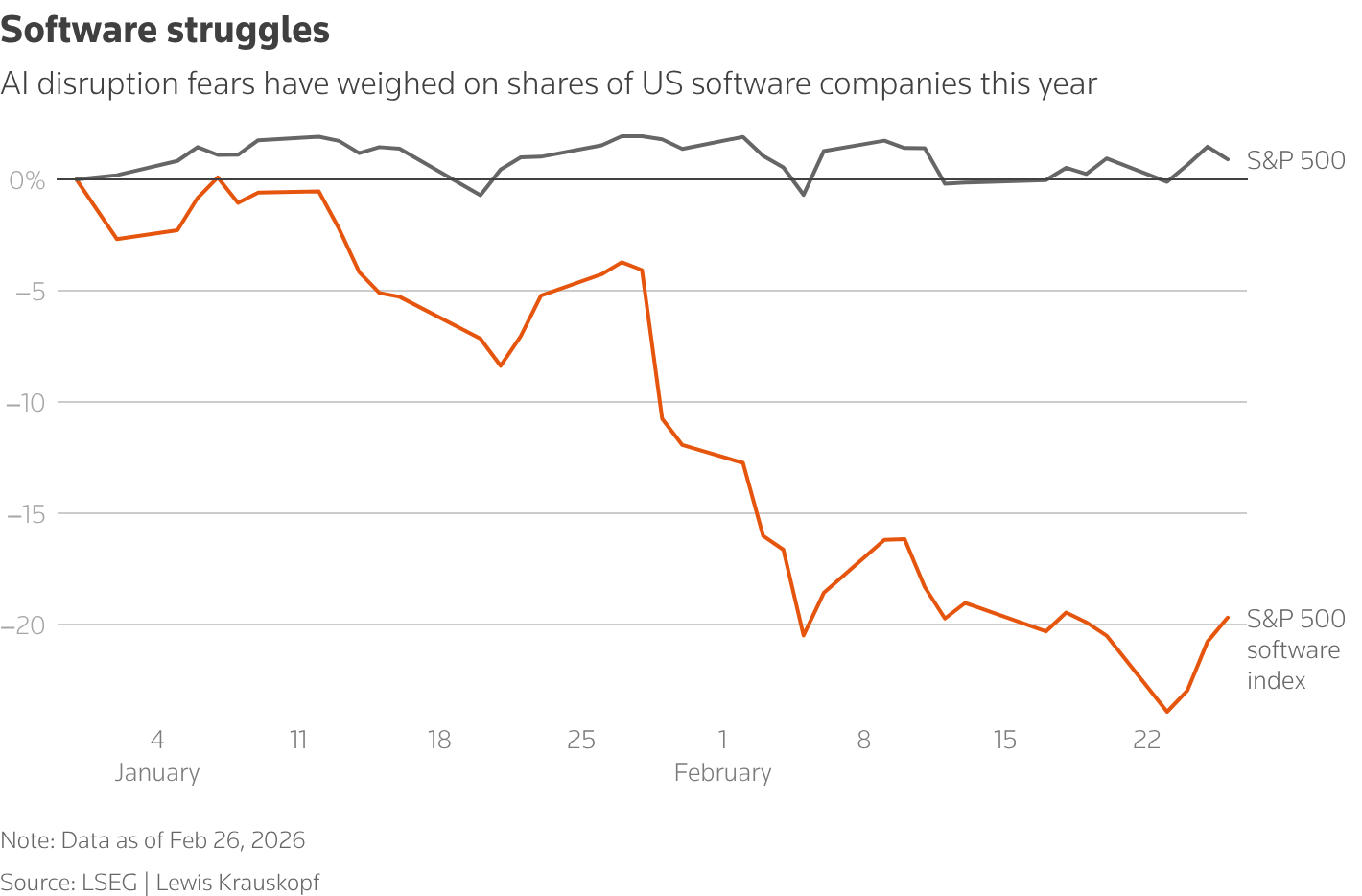 СОКРАЩЕНИЯ РАБОЧИХ МЕСТ, СВЯЗАННЫЕ С ИИ, УСКОРЯЮТСЯ Сокращения рабочих мест, связанные с ИИ, растут по всему миру. Согласно подсчетам Reuters, с ноября компании объявили более чем о 61 000 сокращений рабочих мест, связанных с ИИ, включая Amazon (AMZN.O), открывает новую вкладку, Pinterest (PINS.N), открывает новую вкладку, и австралийскую Wisetech (WTC.AX), открывает новую вкладку. Однако Block является одной из самых известных компаний, которые прямо называют ИИ основной причиной своих сокращений, а не вторичным фактором повышения эффективности. Некоторые инвесторы утверждают, что сокращения, связанные с автоматизацией, частично компенсируют годы чрезмерного найма. «ИИ — новый козел отпущения», — сказал в пятницу Брайан Джейкобсен, главный экономический стратег Annex Wealth Management. Тем не менее, рынки все больше обеспокоены потенциалом ИИ подорвать рабочие места и прибыли на фоне неопределенной глобальной экономической ситуации. Широко распространенный на этой неделе отчет Citrini Research описал сценарий 2028 года, в котором безработица вырастет до 10,2% из-за быстрого вытеснения работников в сферах программного обеспечения, логистики и доставки.