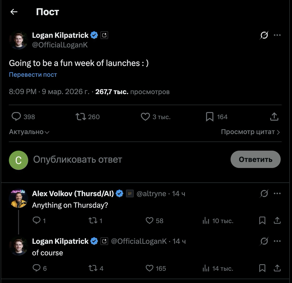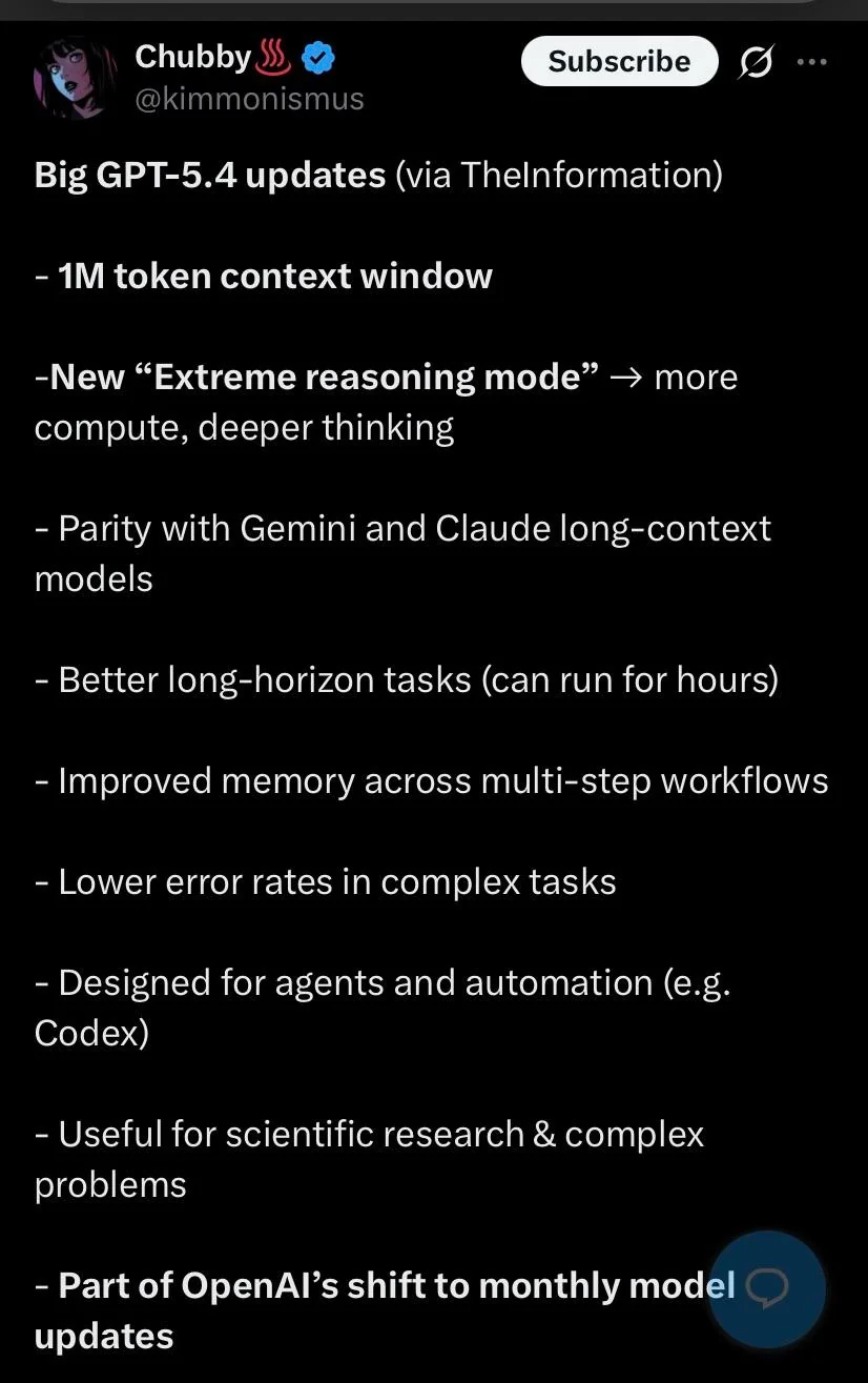 Через час после релиза 5.3 Instant OpenAI опубликовали такой интересный твит. Можно предположить, что вместо 5.3 Thinking/Pro выйдет 5.4. Обычно крупные релизы по четвергам, так что ждём. Плюс недавно в коде сайта спалилась 5.4