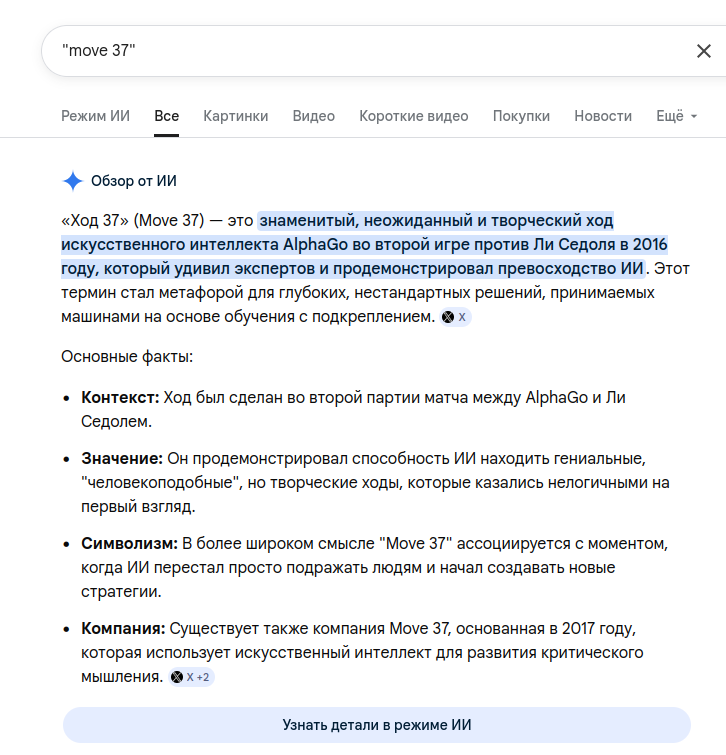 Этот легендарный "37 ход" вошел в историю как символ ИИ-креативности и победы стратегического "мышления" машины над человеком.