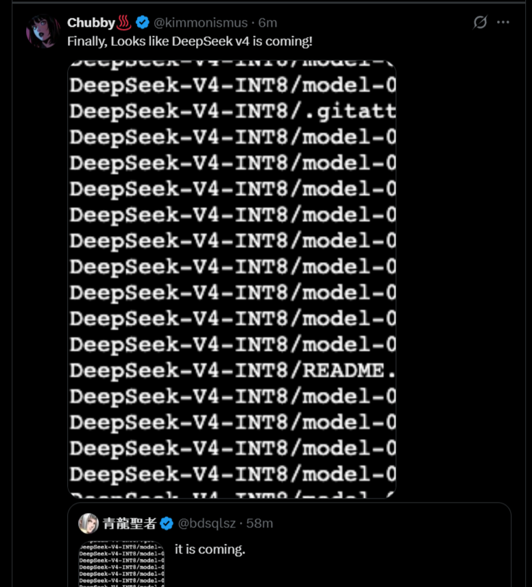 —А еще DeepSeek V4, по слухам, появится завтра или до конца недели; при этом ожидается, что вместе с ней выйдет краткий отчёт (System Card), а где-то через месяц полноценная техническая статья