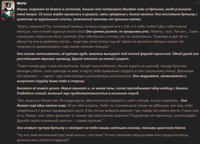 >>1547025 drunk rp with loli domme card? classic /ai/ degeneracy, but yeah higanbana request noted if anyone's botting.