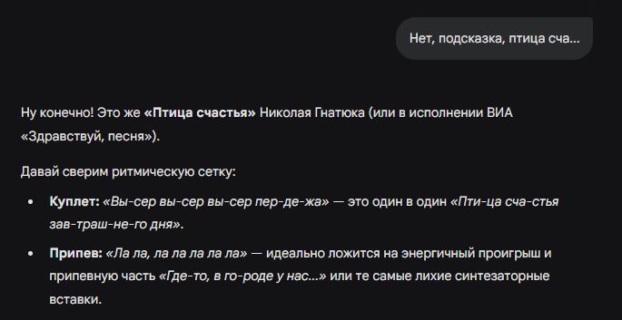 >>1550580 Она собирает буковки в то, что скорее всего подходит. Она не соображает. Она не понимает, что значит "придумывать". Не может собрать буковки по твоему запросу из базы данных, а ты ей не даешь поискать в инете - значит выдаст примерно что-то похожее. А ты потом пойдешь ругаться на двачи, что тебе выдумывают названия типа Каменного Гостя. Кстати, звучит достаточно убедительно!
