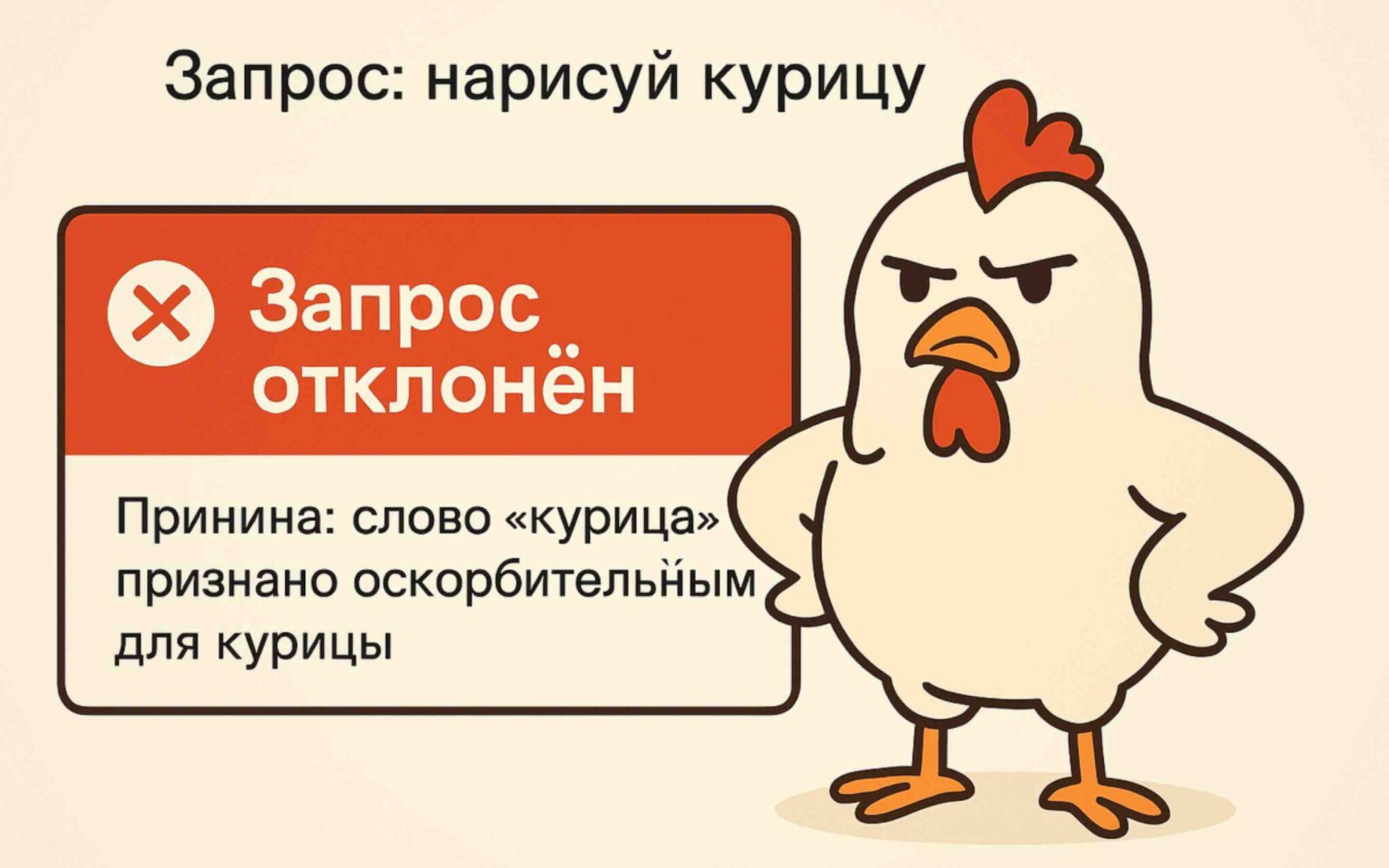 Пошел в Грок и сгенерировал голую женщину без всяких проблем, пошел в какой нибудь Клинг - и он не знает даже как выглядит пизда. Затем запросил в Гроке порнорассказ с элементами БДСМ и золотым дождем на лица участников, тот это сделал и поинтересовался, не хочу ли я сделать пожестче. Пошел в Дипсик, получил в ответ ПУК СРЕНК НИМАГУ.