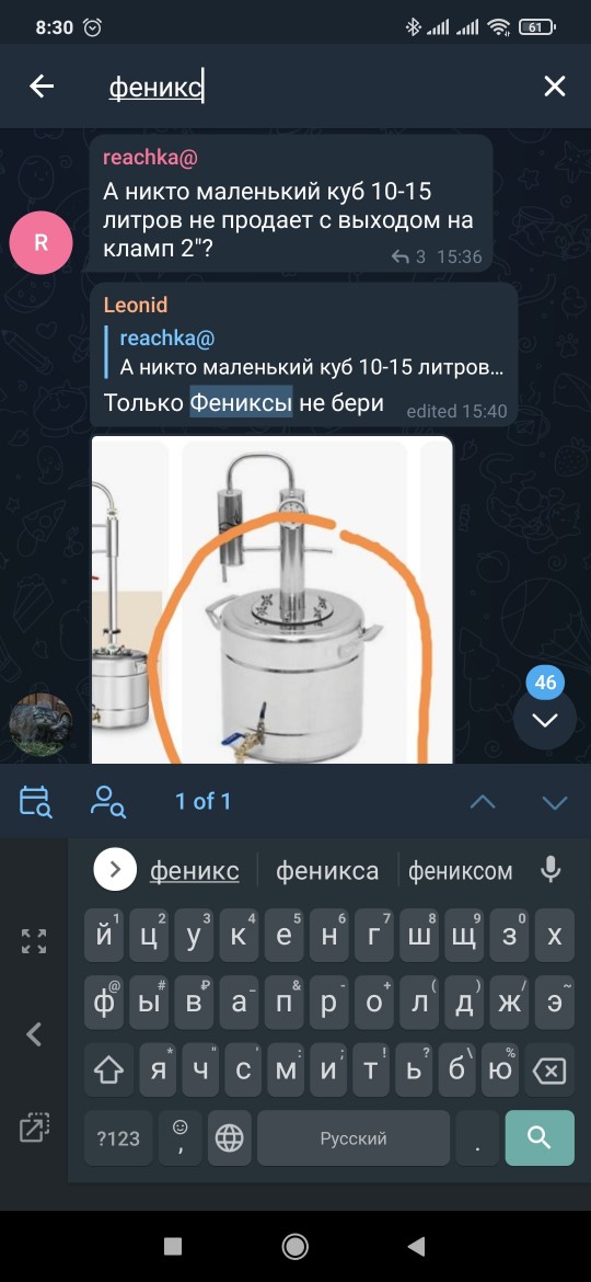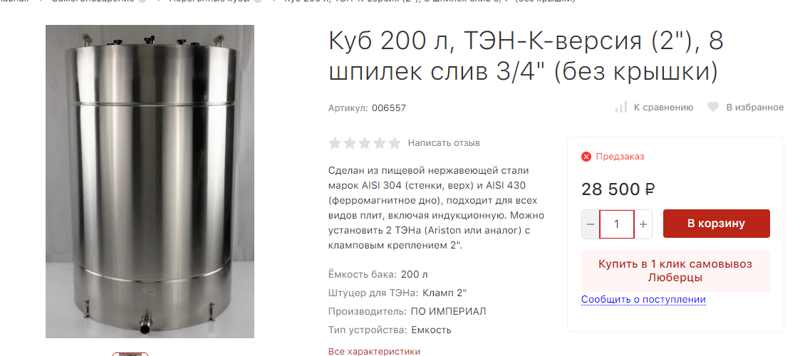 >>1086582 >Я так понимаю с дефлегматором? Да. и не морочься названиями дефлегматор-холодильник - одно и тоже. И с отбором по жидкости (это когда у тебя отбор идет ниже холодильника) >>1086582 >Чё там вообще какой положняк тиры марки стали чё как ориентироваться то? 304 нержавейка. нужно уточнять у продавца индукционку поддерживает или нет.>>1086588 Для индукции. Но с врезкой под кламп для тэна. (пишу врезка про кламп тк мне кламп удобнее чем резьба). Если много за раз гонять станешь, то я бы тэны взял. Но яблоки у меня бы отгабриэлить без индукционки не вышло. В общем определись что и из чего делать станешь. Оченно советую тебе почитать шапку. И в целом ознакомиться с нашей писаниной.