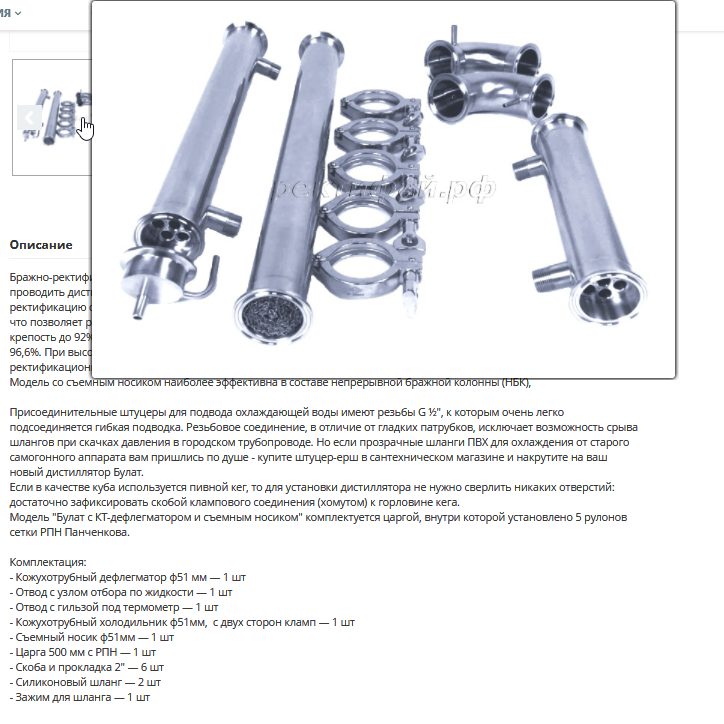 >>1070470 >А разве вон там трубочка вниз идущая из верхнего изгиба - не узел отбора? Точно, не заметил. За сколько коллега продает, сколько литров куб, какие клампы, дно под индукцию годится?