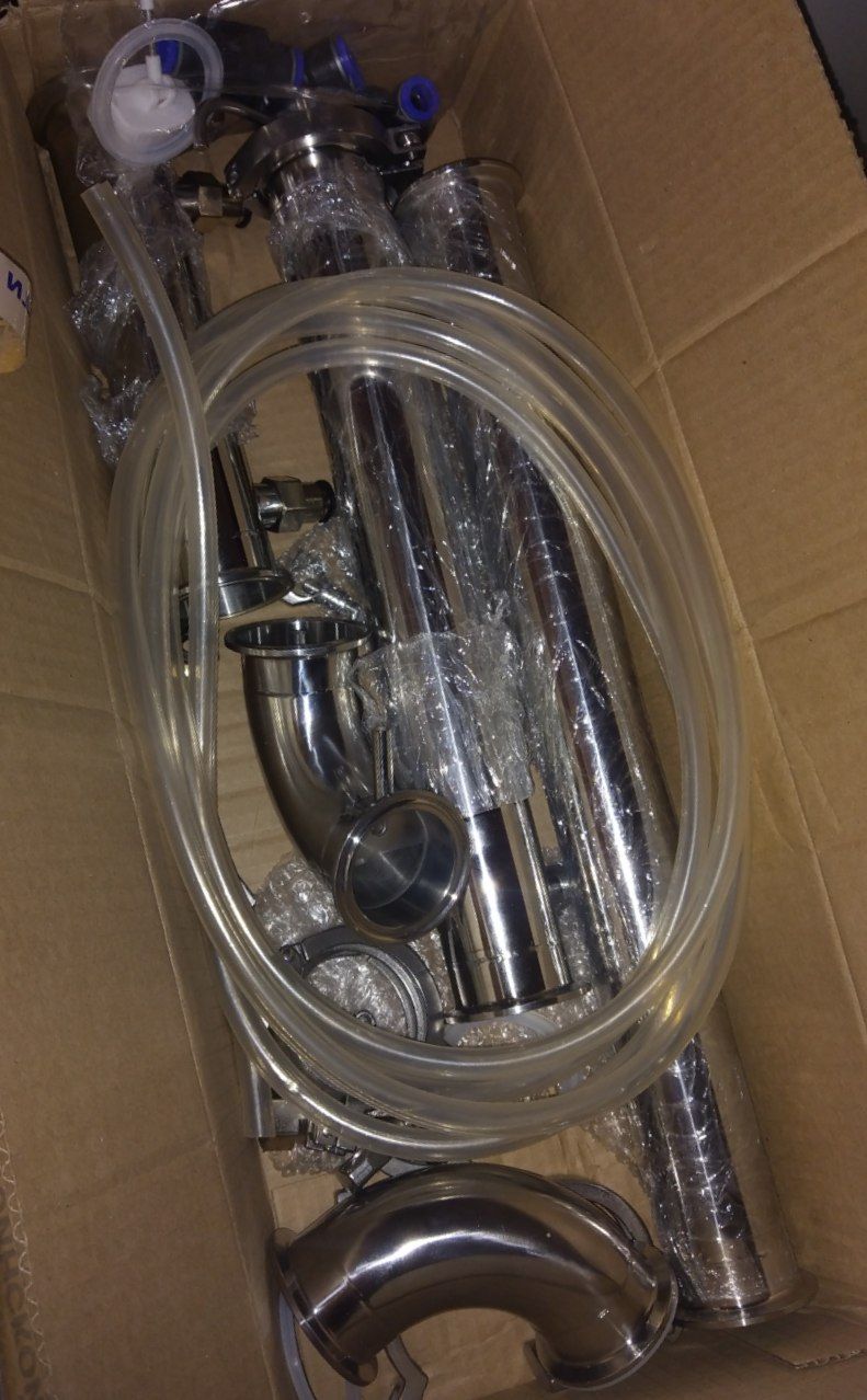 Дистиллятор с предподогревом браги. Конденсирует спиртовой пар и предподогревает брагу для колонны (брага выступает как охлаждающая жидкость). Царга (царги) с тарелками. Манометр. Нужен для контроля колонны (хотя и без него можно обойтись). Насос. Бардоотводчик. Это узел, который вверх пропускает пар, а вниз сливает барду в канализацию. Опционально - доохладитель для продукта, если брага недостаточно холодная поступает. Собственно, все. Насос для сахарной можно шестеренчатый, в качестве дистиллятора с предподогревом можно использовать обычный дистиллятор, просто с избыточной утилизируемой мощностью. Узел ввода браги в колонну можно сделать из узла отбора по жидкости просто перевернув. В качестве бардоотводчика можно пользовать узел жидкостного отбора, если он сто процентов жидкость улавливает, только придется чуть повозиться с шлангами на отвод, чтобы пар не прорывался, по роликам Шульмана можно сориентироваться. Это если желание пошаманить и сделать подешевле. А так у Шульмана и у ректифая отличные НБК. Бери и пользуйся.