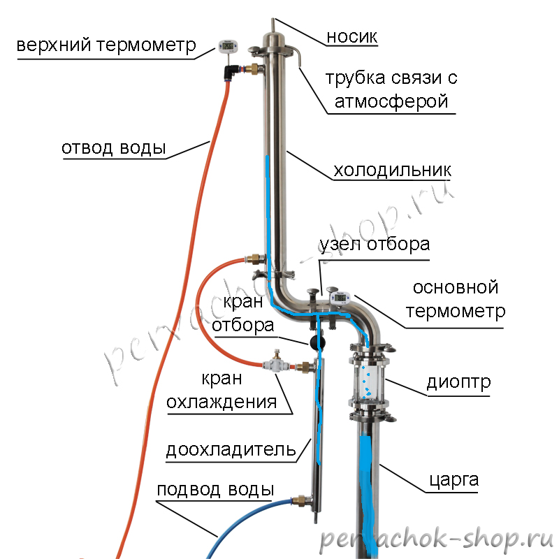 >>1070464 Почитал немного. А разве вон там трубочка вниз идущая из верхнего изгиба - не узел отбора? И туда ещё холодильник надо ставить вниз. Или я вообще неправ?
