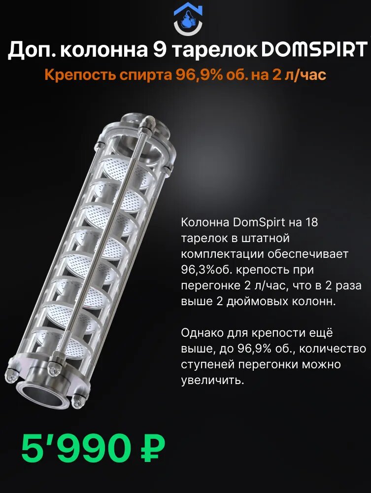 Но опять таки, сейчас все модульное, что мешает потом на 3 дюйма кламп взять для тарельчатую царгу, которую кстати выпускает домспирт, который бывший люкссталь... Которая к слову стоит не дорого. Я как понял взять эту тарельчатую хуету, и также узел отбора по жидкости с дефом сверху, вот тебе и ароматическая дистилляция.